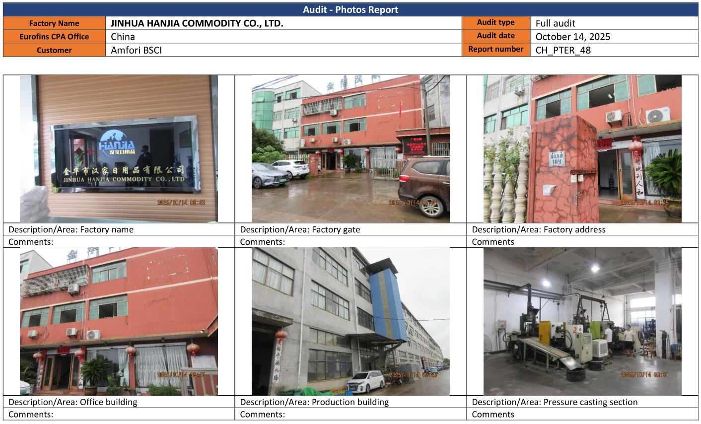 Jinhua Hanjia Commodity Co.,Ltd. passed its BSCI audit this year on October 14th, receiving Grade C certification, the minimum required by the client. This certification is valid for one year. The BSCI audit was conducted by EUROFINS, the client's designated organization. The client regularly purchases stainless steel products from our company, including wine openers, barware, and cocktail shakers.